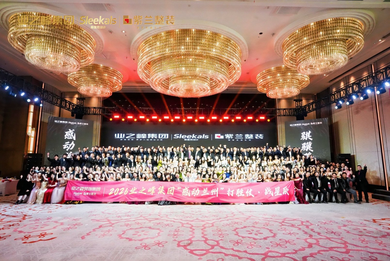 最后,全体业之峰人齐聚舞台,在璀璨水晶灯与星光舞台的映衬下拍摄“全家福”。镜头里,一张张笑脸洋溢着希望与力量,一句句口号传递着信念与担当。